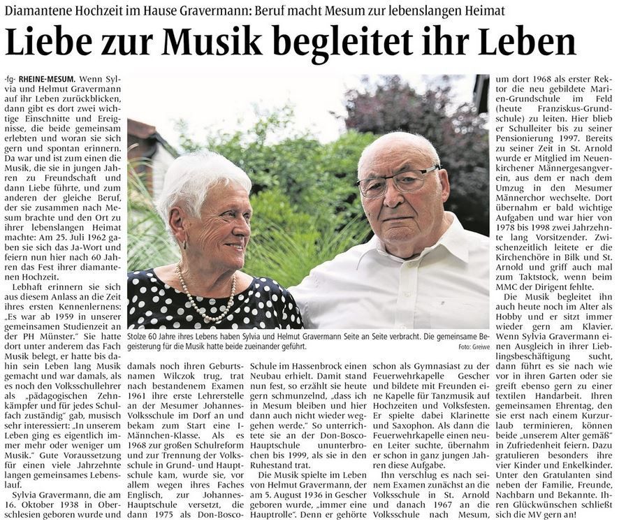 Alles Gute und die herzlichsten Glückwünsche zur diamantenen Hochzeit vom Mesumer Männerchor