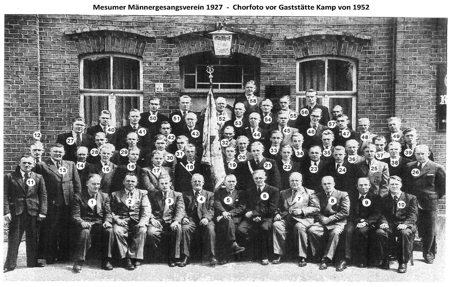 Chorfoto vor Gaststätte Kamp - Aufnahme von 1952